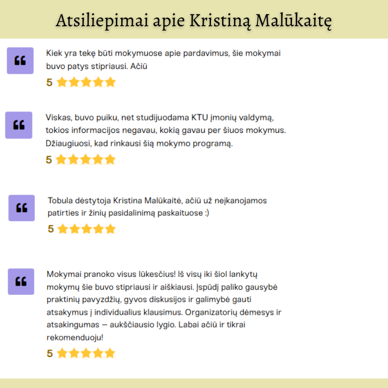 Kristina padeda atrasti pasitikėjimą savimi ir išmokti parduoti be įtampos.